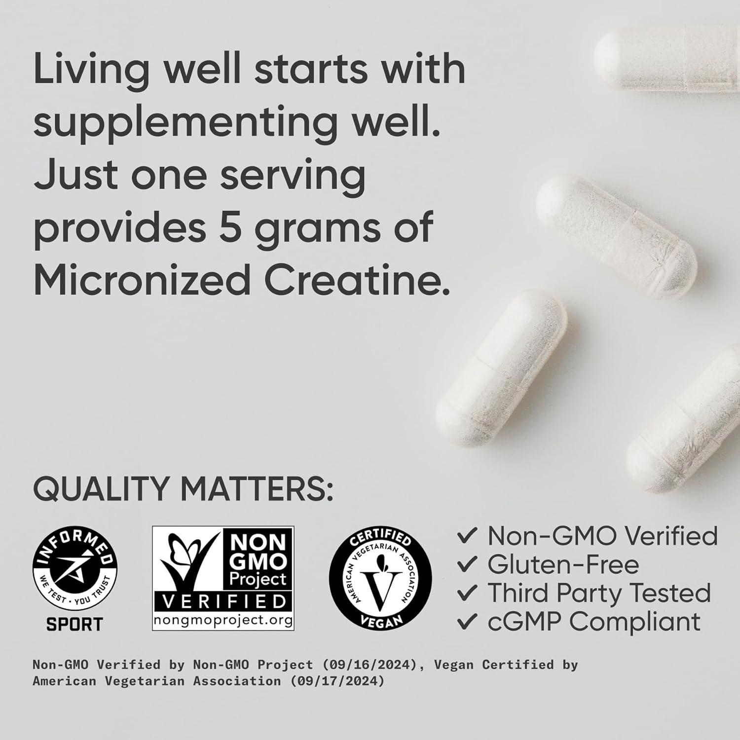 ATHLETE-TRUSTED CREATINE: Sports Research Creatine Monohydrate Capsules are entirely Vegan, Non-GMO Project Verified and Informed Sport Tested.