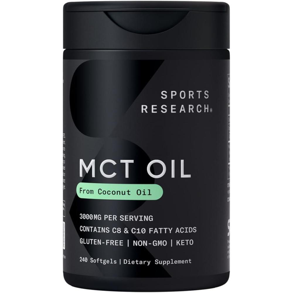 Sports Research Keto MCT Oil Capsules derived from Coconut Oil | Keto Fuel for The Brain & Body | Derived from Non-GMO Coconuts (120 Soft gels)(240 Count (Pack of 1))