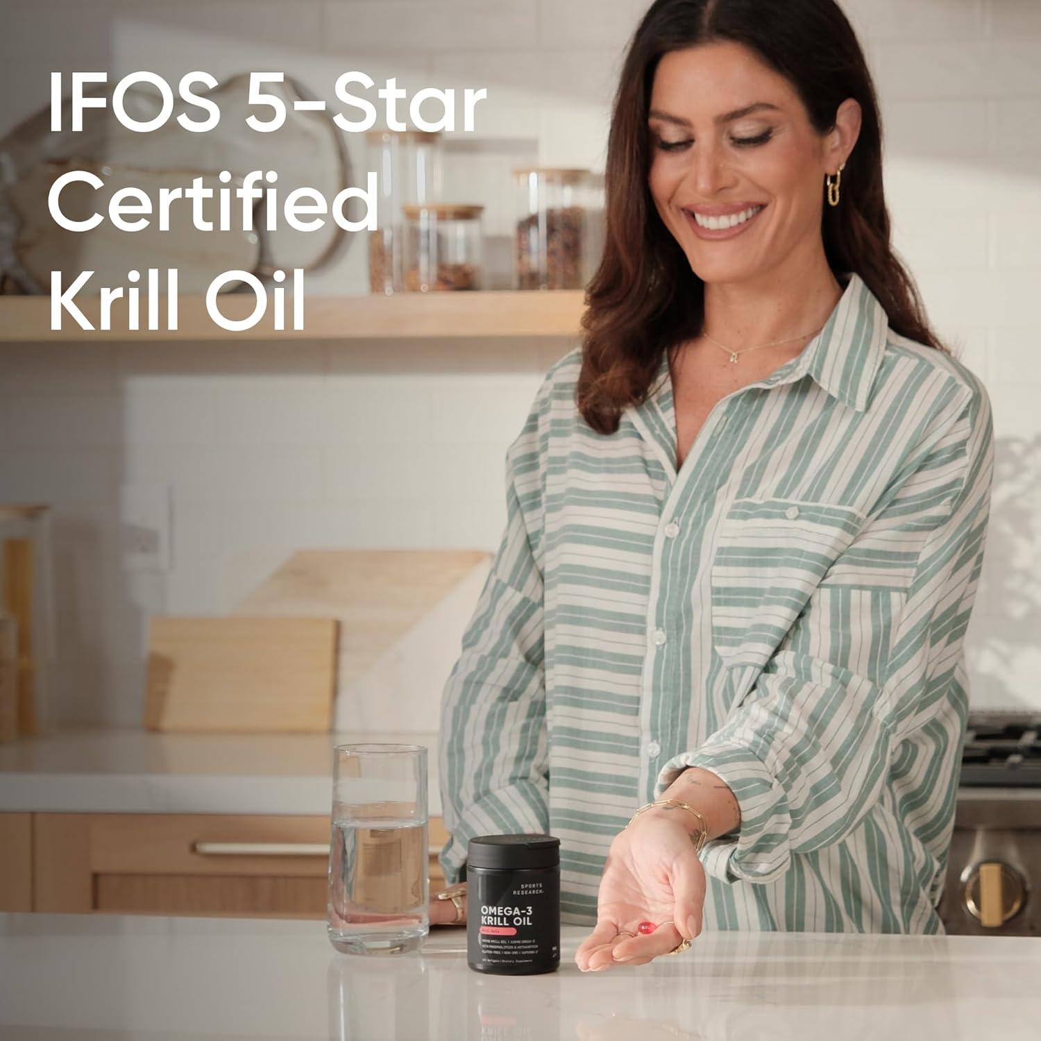 Sports Research Krill Oil Supplement with EPA & DHA Omega 3, Phospholipids & Astaxanthin from Antarctic Krill - Highest Concentration of Krill Oil for Men & Women - 1000mg, 30 Softgel Capsules(120 Count (Pack of 1))