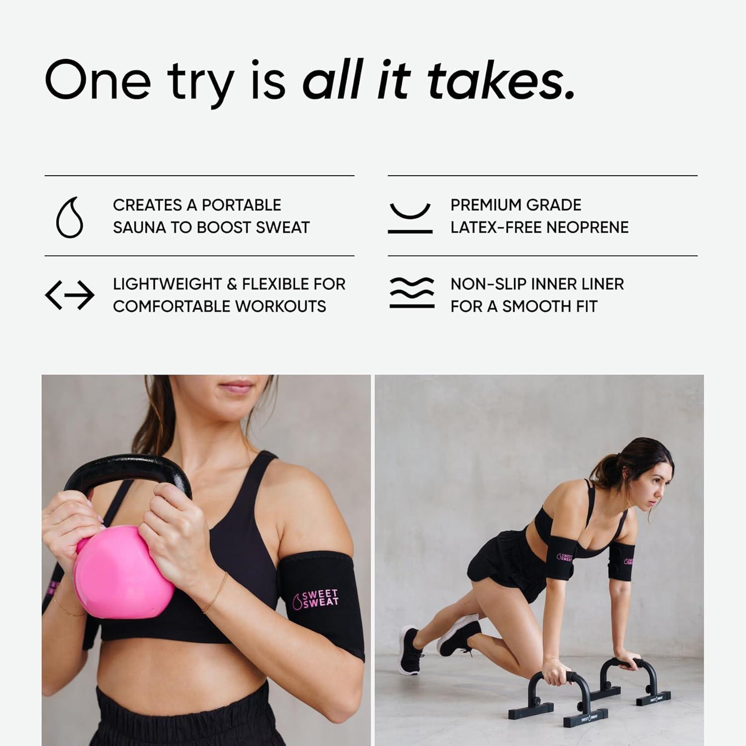 ACTIVATE YOUR ARMS: Sweet Sweat Arm Trimmers are built to bring focus and fire to your upper-body training. Designed to support thermal engagement around the biceps, they help turn each rep, curl, and press into a deeper connection with your movement. Feel the heat build as your effort becomes visible, a signal of progress in motion.