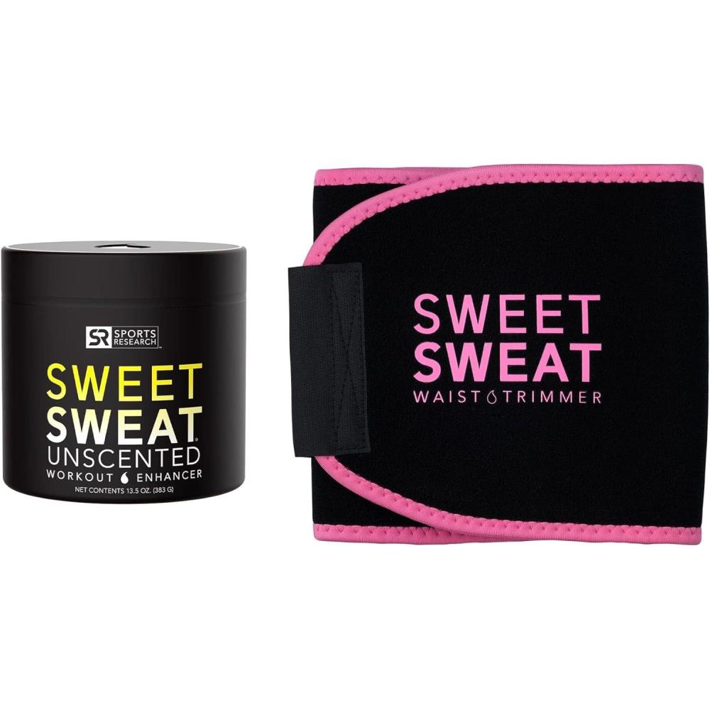 Sports Research Sweet Sweat Original Waist Trimmer (Pink, Small) & Unscented Sweet Sweat 13.5oz Jar Bundle