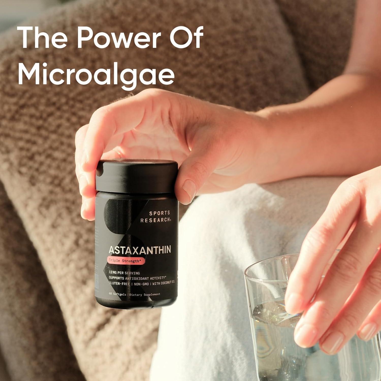 Sports Research Triple Strength Astaxanthin Supplement (6mg) with Organic Coconut Oil for Antioxidant Activity, Skin & Eye Health Support – Non-GMO Verified & Gluten Free – 120 Softgels(60 Count (Pack of 1))