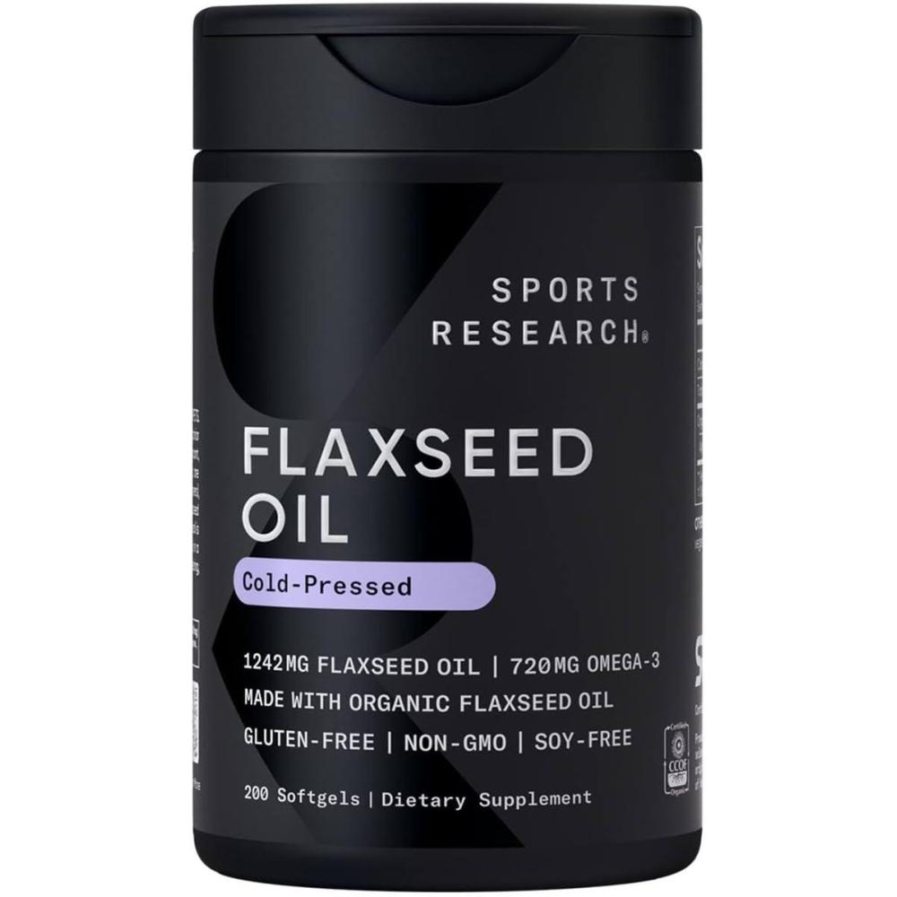 Sports Research Vegan Flaxseed Oil (1200mg) Herbal Supplement with Plant-Based ALA Omega 3 – Vegan Certified & Non-GMO Verified – Gluten, Soy & Carrageenan Free (180 Veggie Softgels)(200 Count (Pack of 1))