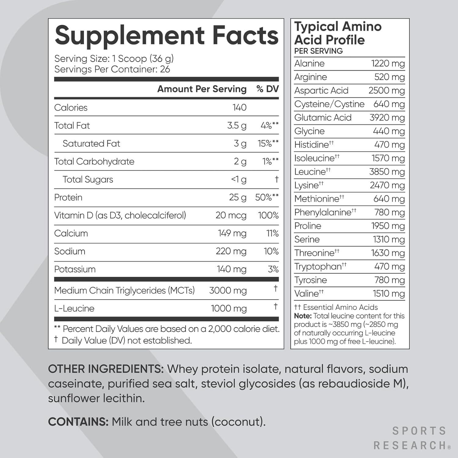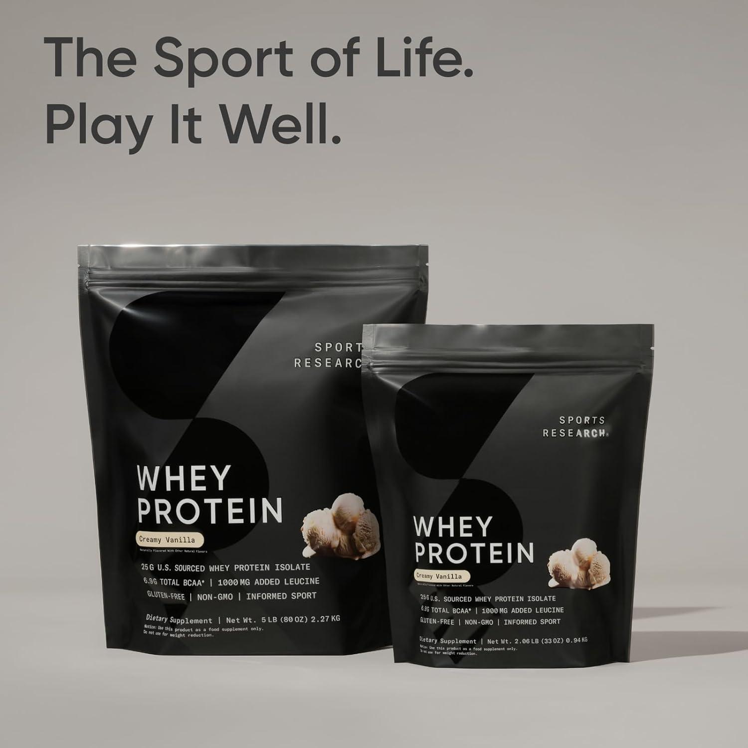 LEAN MUSCLE POTENTIAL: Each scoop of Sports Research U.S. sourced whey protein powder contains 25g of protein and 7.6g of BCAAs for a standout way to build and maintain lean muscle and support workout recovery*